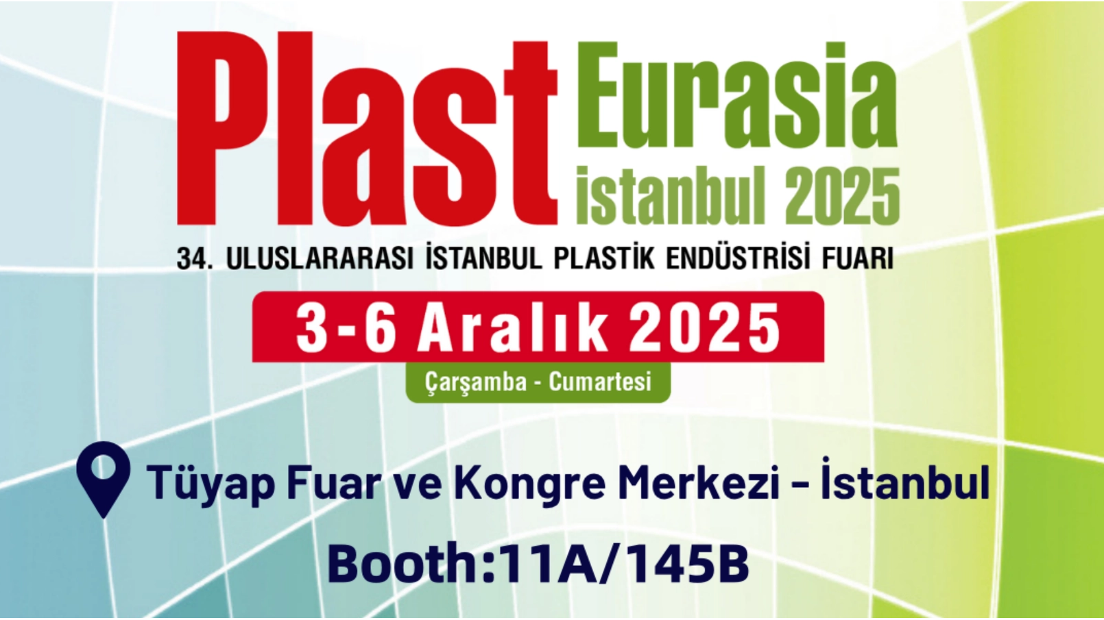 3–6 декабря 2025 г. Tüyap Fuar ve Kongre Merkezi – Стамбул Стенд №: Зал 11A – 145B